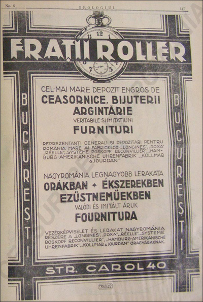 "Fratii A. & I. Roller" a fost una dintre cele mai importante companii de orologerie en-gross din Bucurestiul interbelic.