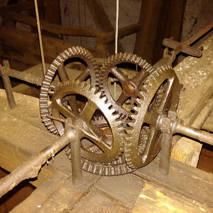 Cadranele au fost repictate la renovarea din 1996 si au astazi o comanda electrica, dupa ce ceasul a fost modernizat in doua randuri (anii ‘970 si 1996). Vechiul mecanism se pastreaza in cutia de lemn de la instalarea din 1873. Diverse notari despre revizii ale ceasului sunt insemnate pe exteriorul unuia dintre peretii cutiei.